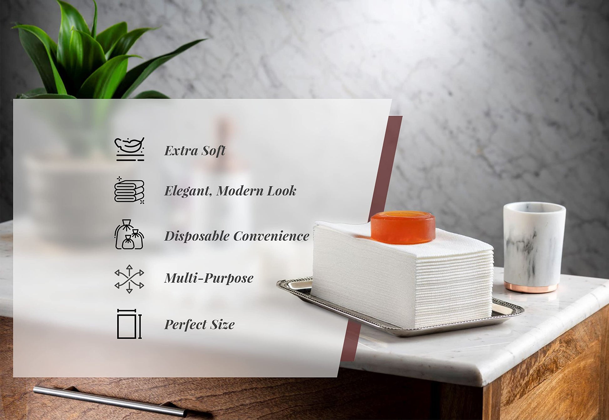 • PREMIUM QUALITY ELEGANT HAND TOWELS: Enhance your hosting with this upscale premium quality disposable guest towels, that all your guests will love!